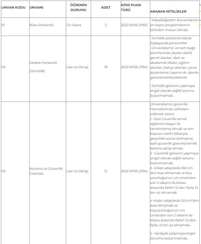 Selçuk Üniversitesi 45 (kırk beş) sözleşmeli personel alımı yapacak   25.03.2024 (saat 08:00'den) – 15.04.2024 (saat: 17:00 ‘a kadar) başvurular alınacak.