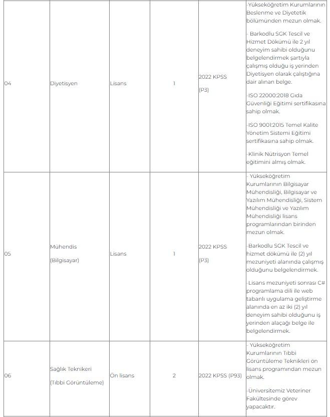 İlan edilen kadro pozisyonlara atanacak personellerin görevini yapmaya engel sağlık sorunu olmamak.