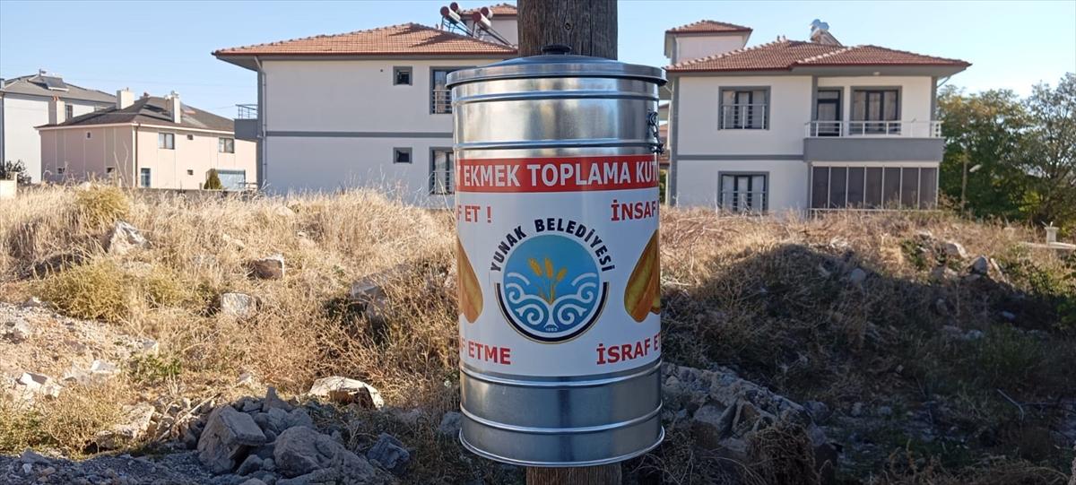 Yunak Belediyesi, "Ekmek tarlada çiftçinin, sofrada senin alın terin" sloganıyla, vatandaşları bu kutulara bayat ekmeklerini bırakmaya davet etti.