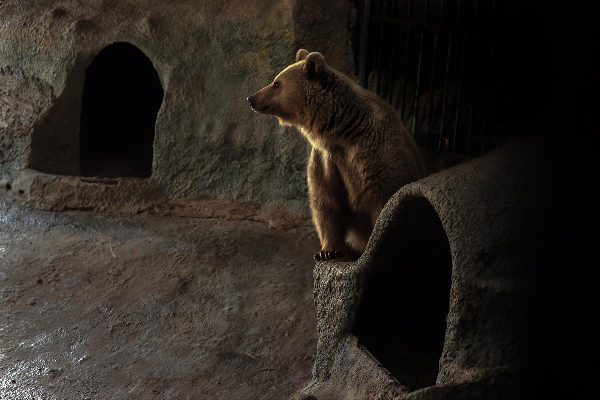Yaz aylarını havuzlu bahçede geçiren ayılar, kış döneminde kapalı mekanda mağaraya benzetilen alanda kalıyor.
