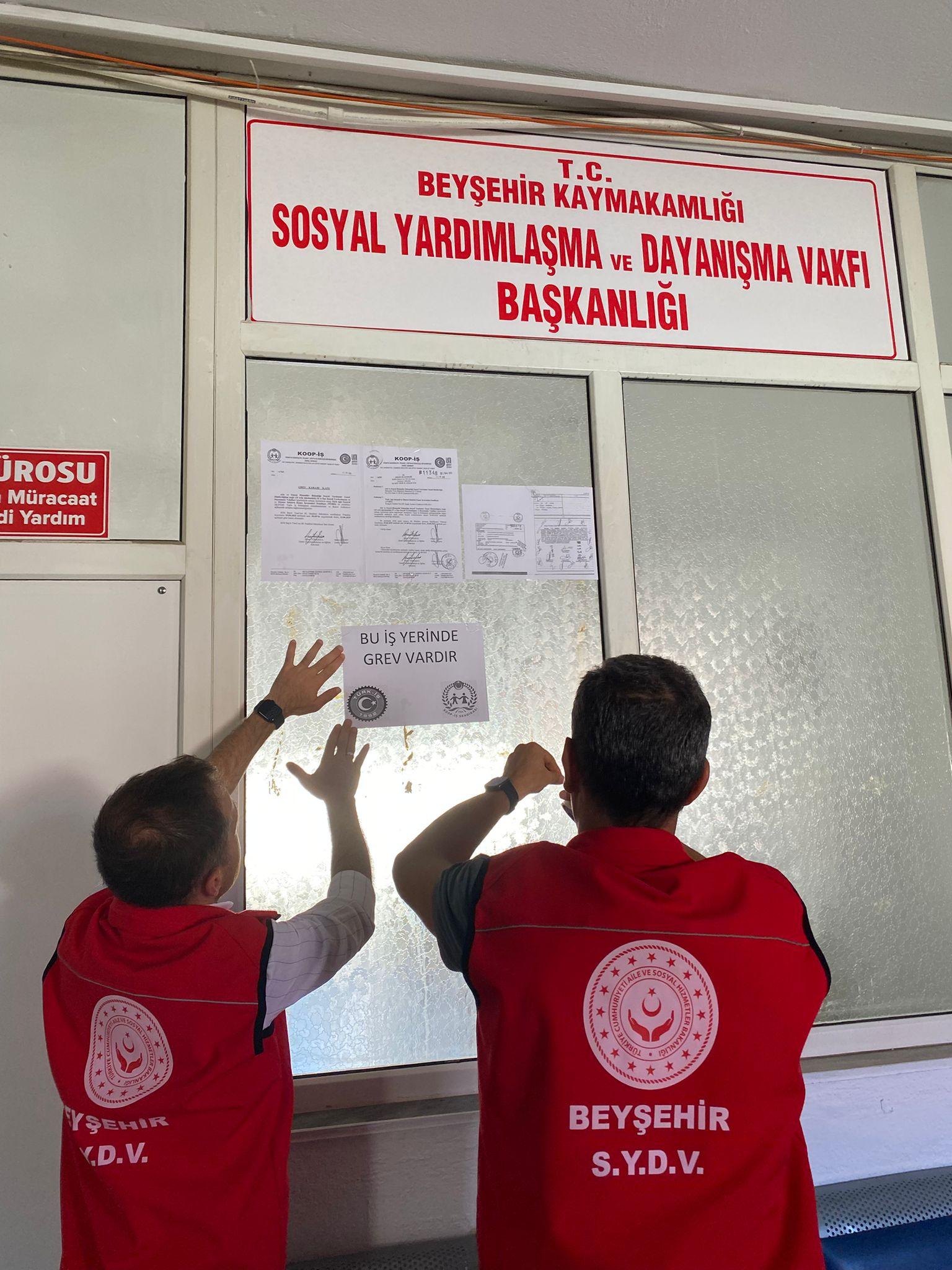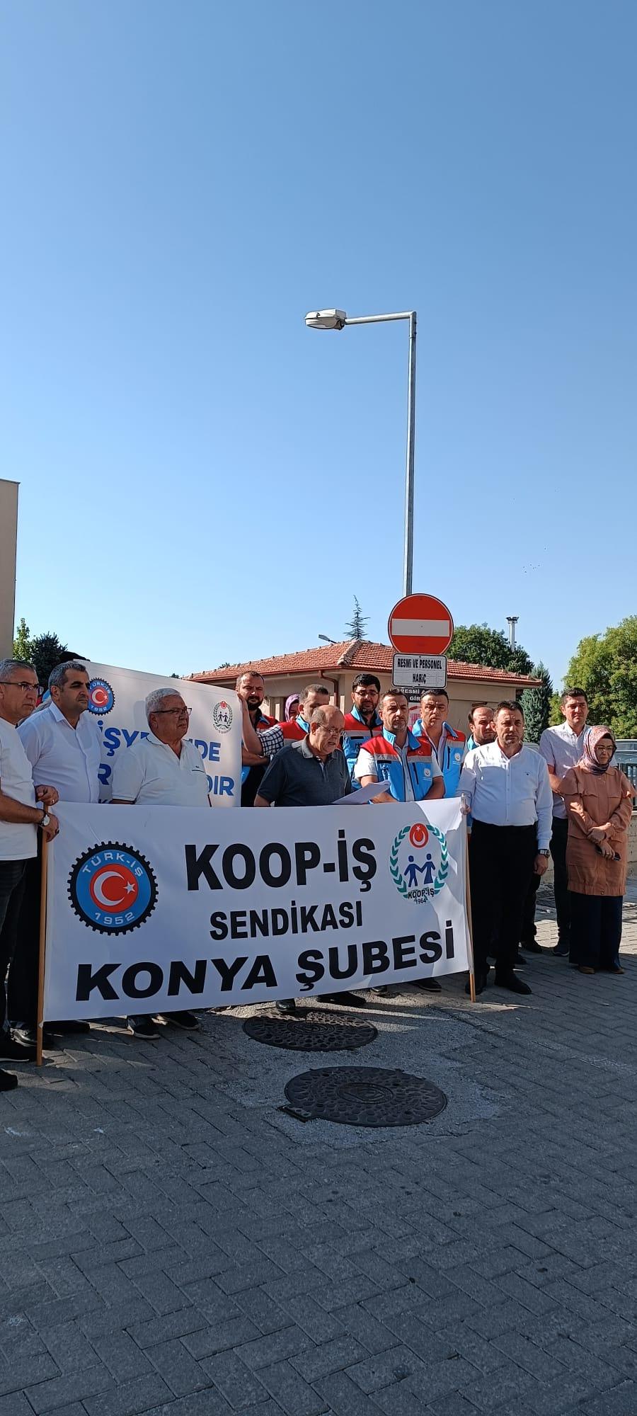 Koop-İş Sendikası Konya Şubesi, Sosyal Yardımlaşma ve Dayanışma Vakıflarında (SYDV) çalışan işçilerin kamu çerçeve protokolünde yer alan zam oranlarından yararlandırılmaması nedeniyle iş bırakma eylemine gitti.
