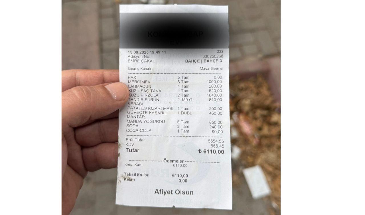 Toplam 5.554 TL'lik ana hesap ile birlikte 555 TL KDV eklendiği ve kredi kartı ile ödeme yapıldı. Bu rakam, Konya'daki restoran fiyatlarının geldiği seviyeyi göstermesi açısından sosyal medyada tartışma yarattı.