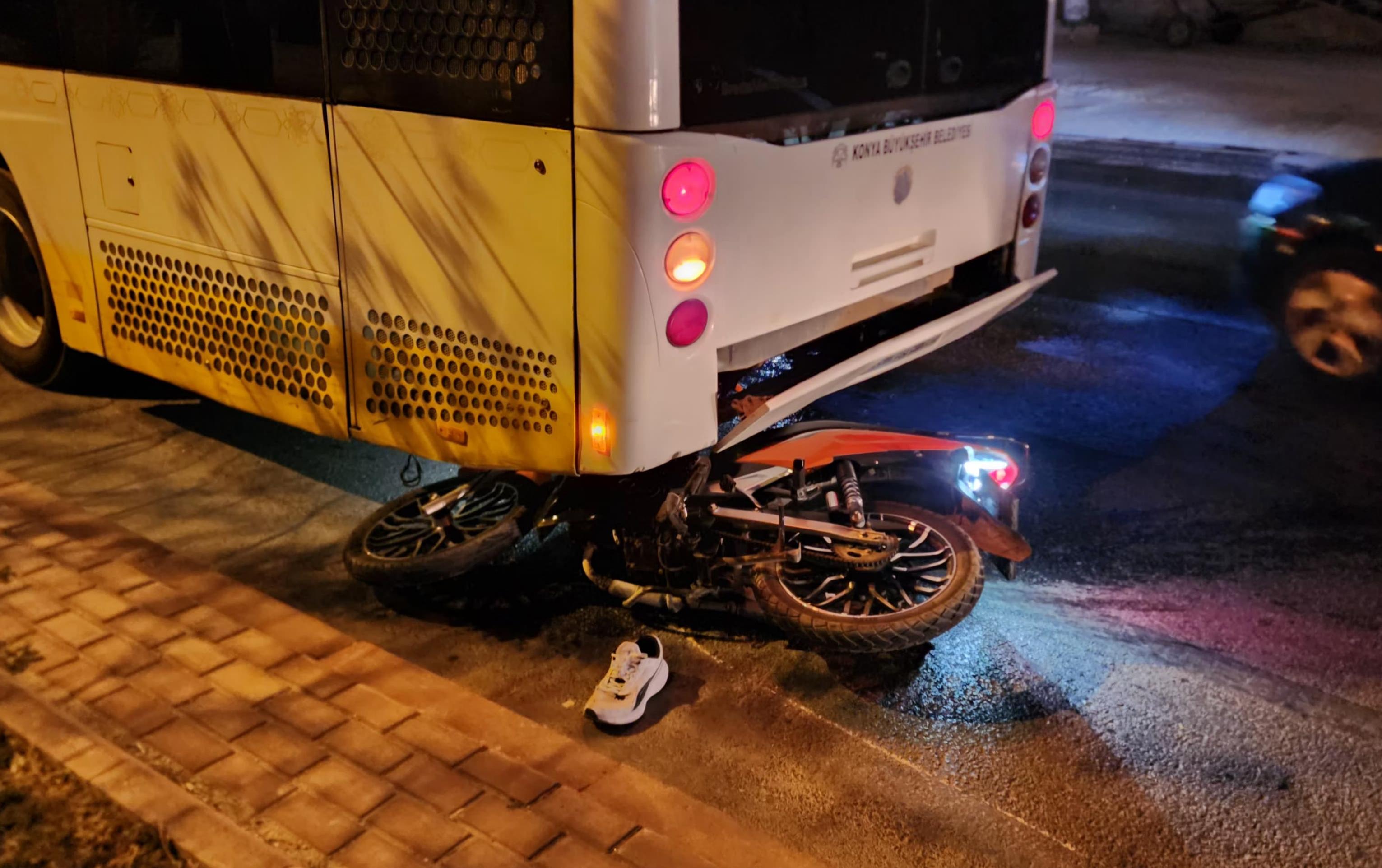 Konya’da korkunç kaza: Motosiklet otobüsün altında kaldı, 2 yaralı