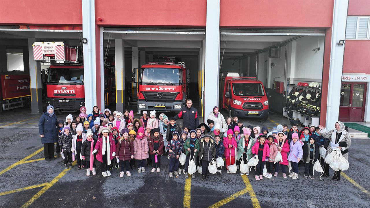 Konya İl Milli Eğitim Müdürlüğü iş birliğiyle yürütülen "Kahraman Çocuklar İtfaiyecilerle Öğreniyor” projesi kapsamında her yıl Selçuklu, Karatay ve Meram'daki 28 bin ilkokul 1. sınıf öğrencisi Konya Büyükşehir Belediyesi'nin Sancak Mahallesi'ndeki İtfaiye Eğitim Merkezi'nde misafir ediliyor.
