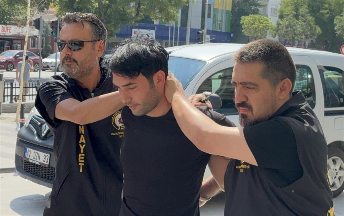 Konya Numune Hastanesine sağlık kontrolü için getirilen zanlı, işlemlerinin ardından adliyeye götürüldü.