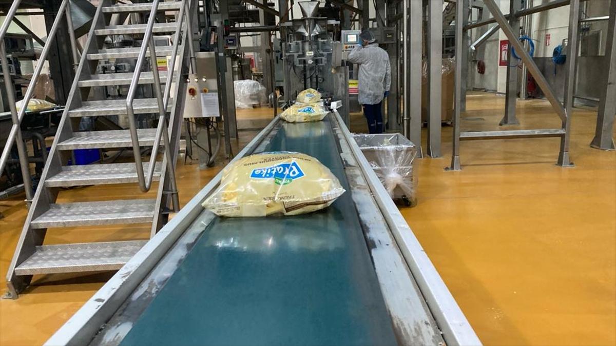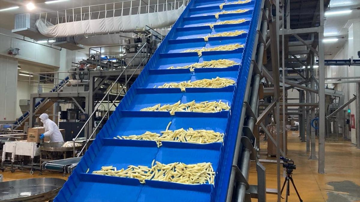 "Buradan çıkan patatesleri sulu bıçak sistemiyle keserek dilimliyoruz. Küçük patatesler elenir, patates üzerinde zirai nedenle lekeli olanlar ayrılır. Haşlama ünitesine geçen patateslerin burada iç yapısı olgunlaştırılır. Sonrasında çift kademeli kurutmaya geçilir. Patatesin fazla suyu alınır, 25-30 saniye ön kızarmaya tabi tutulur. Ardından eksi 40 derece hızlı dondurma sistemine giren patatesler burada donar. Şoklama sonrasında eksi 15 derecedeki patatesler hızlı bir biçimde paketlenir ve hiç vakit kaybetmeden soğuk hava depolarına koyulur. En son soğuk hava depolu araçlarla sevkiyatı yapılır. Araçların soğukluk derecesi uydu sistemiyle takip edilir."