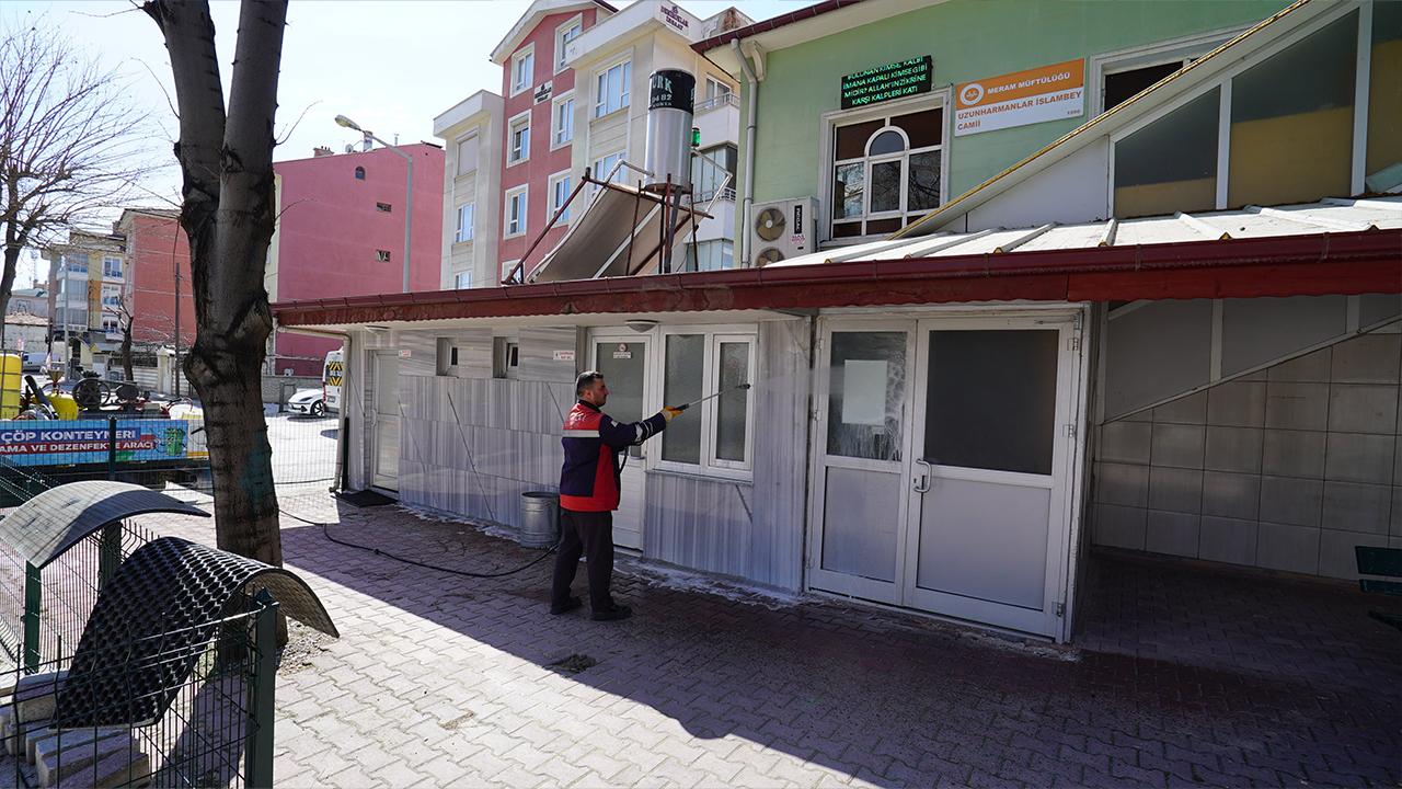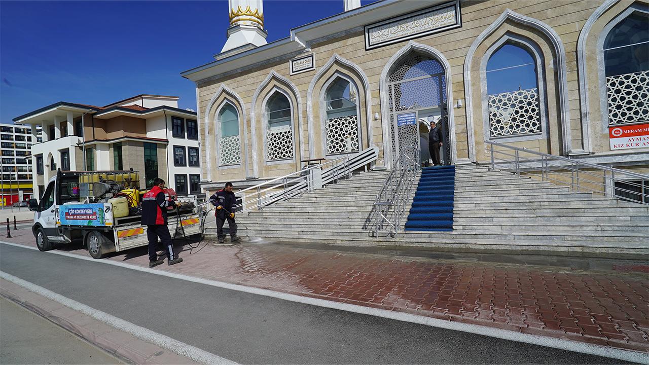 Çevre Koruma ve Kontrol Müdürlüğü ekipleri tarafından yürütülen çalışmalar kapsamında cami, türbe ve mescitlerin bahçeleri yıkanıyor, avlularının ve çevrelerinin temizliği titizlikle yapılıyor. Belediye ekipleri, cami bahçelerinde bir taraftan genel temizlik yaparken diğer taraftan da  çevre düzenlemeleri kapsamında çöp toplama, süpürme ve yıkama işlemleri gerçekleştiriyor. Ayrıca, oturma alanları, şadırvanlar ve abdesthaneler de detaylı bir şekilde dezenfekte ediliyor.