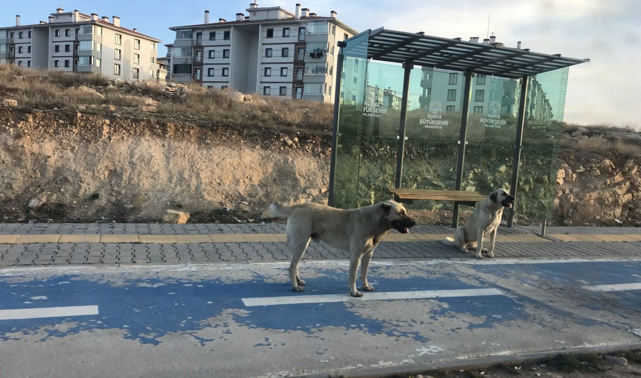 Konya'nın Selçuklu ilçesine bağlı Ardıçlı TOKİ Konutları'nda yaşayan vatandaşlar, sabah saatlerinde otobüs duraklarında başıboş dolaşan sokak köpeklerinden şikayetçi. Sabah erken saatlerde otobüs bekleyen vatandaşlar, 8-10 köpeğin durağın çevresinde dolaştığını belirterek yetkililerden çözüm talep etti.