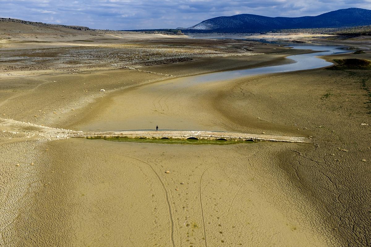 Konya’nın Çumra ilçesindeki Apa Barajı’nda su seviyesinin düşmesiyle, Osmanlı dönemine ait yaklaşık 600 yıllık taş köprü tekrar görünür hale geldi.