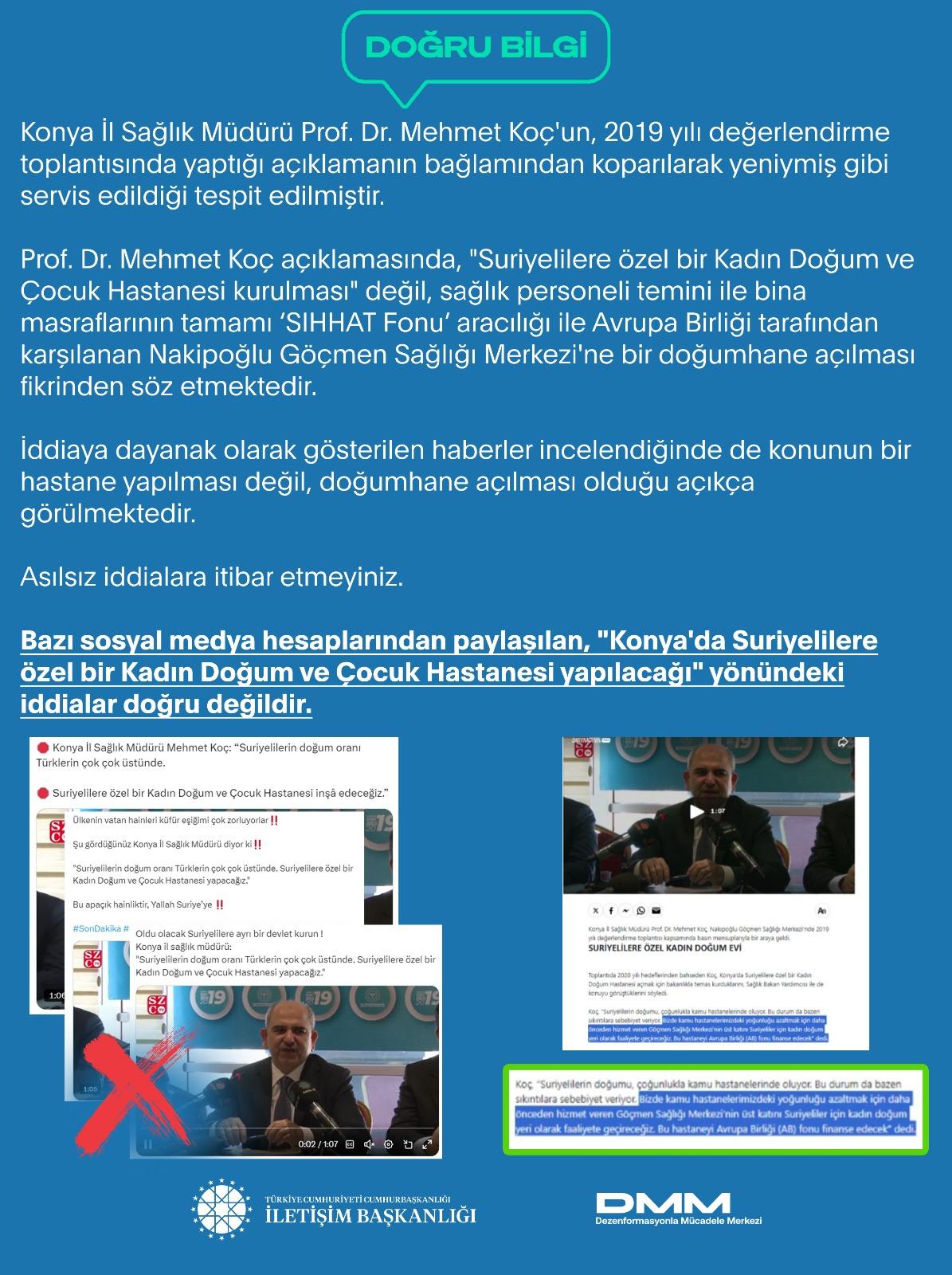 konu İle ilgili Konya İl Sağlık Müdürlüğü ve Cumhurbaşkanlığı İletişim Başkanlığı Dezenformasyonla Mücadele Merkezi kamuoyuna açıklama gerçekleştirdi.
