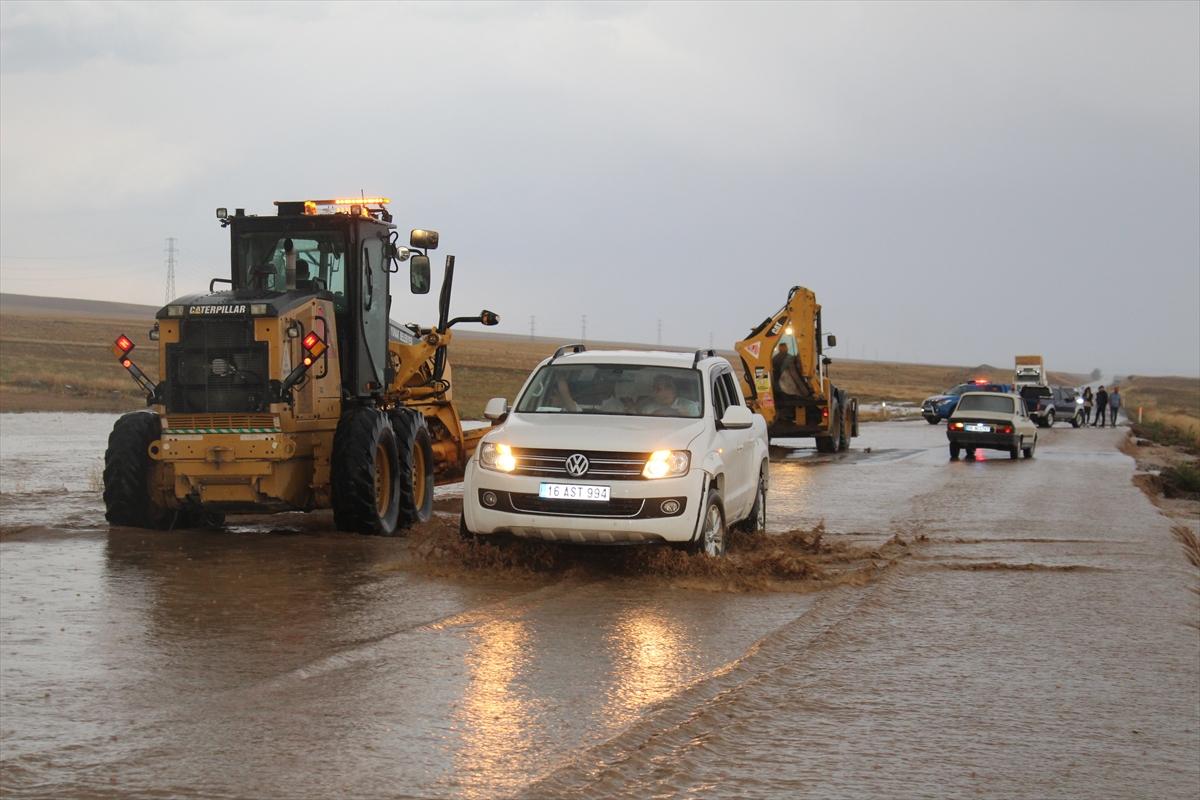 Uzun araç kuyruklarının oluştuğu yolda, sürücüler zorlu anlar yaşarken, Yunak Belediyesine bağlı ekipleri kapanan yolları saatlerce süren zorlu çalışma sonrası suları tahliye ederek yolu yeniden trafiğe açmaya başardı.