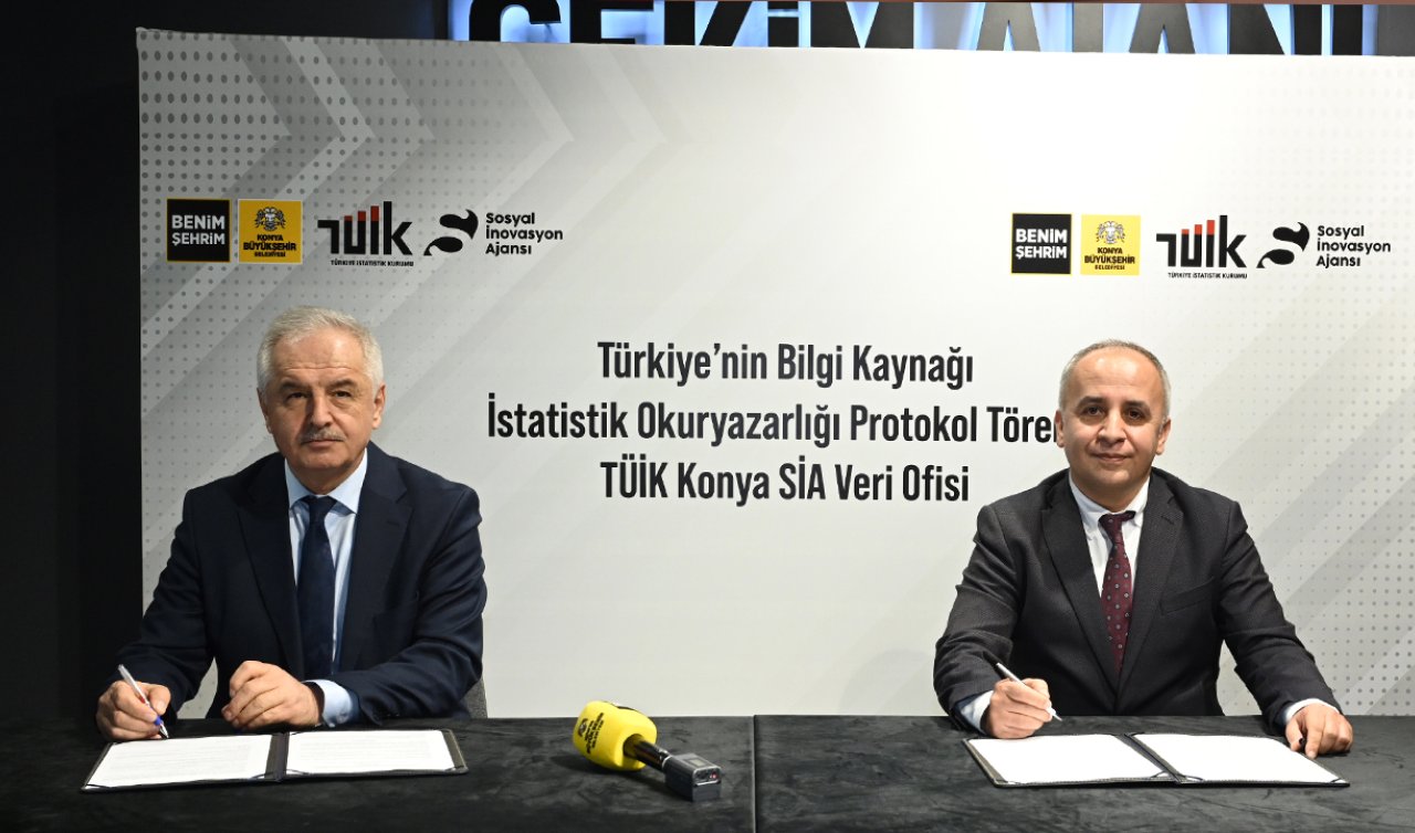 Konya Büyükşehir Belediyesi ile Türkiye İstatistik Kurumu (TÜİK) Konya Bölge Müdürlüğü arasında Sosyal İnovasyon Ajansı'nda TÜİK Veri Ofisi açılmasına yönelik iş birliği protokolü imzalandı.