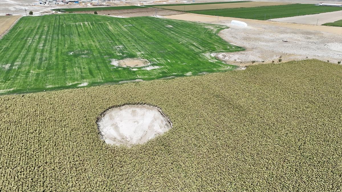 Konya'nın Karapınar ilçesinde 6 metre derinliğinde, 25 metre çapında obruk meydana geldi.