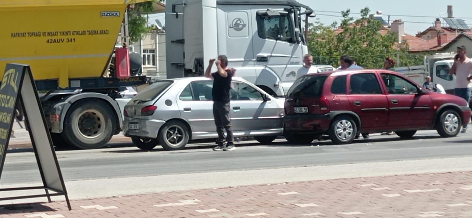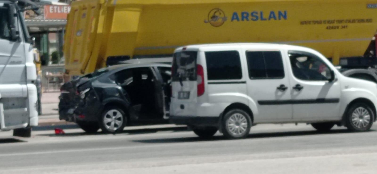 Konya'nın Meram ilçesi Antalya Çevre Yolu Batı Hadimi Mahallesi'nde seyir halindeki tırın otomobile çarpması sonucu 4 araç zincirleme trafik kazasına karıştı.