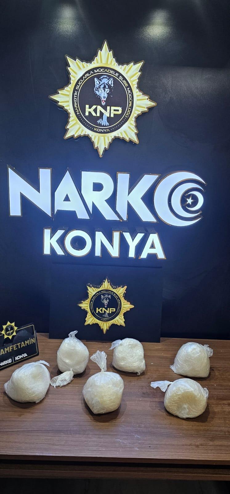 Konya Emniyet Müdürlüğü'ne bağlı Narkotik ekipleri zehir tacirlerine yönelik yürüttüğü çalışmalarda Meram ilçesinde şüphelendikleri bir kamyoneti durdurdu. Durdurulan kamyonetin kasasında bulunan hava kompresörünün içerisinde bir beze sarılmış vaziyette 6 parça halinde 6 kilo 102 gram metamfetamin ele geçirildi. Yakalanan miktar Konya'da yakalanmış en yüksek metamfetamin olarak kayıtlara geçti. Hava kompresörünün içine uyuşturucunun zulalanıp yanmaması için su dökülmesi ve kompresöre tekrar kaynak yapılması ilginç bir detay olarak göze çarptı.