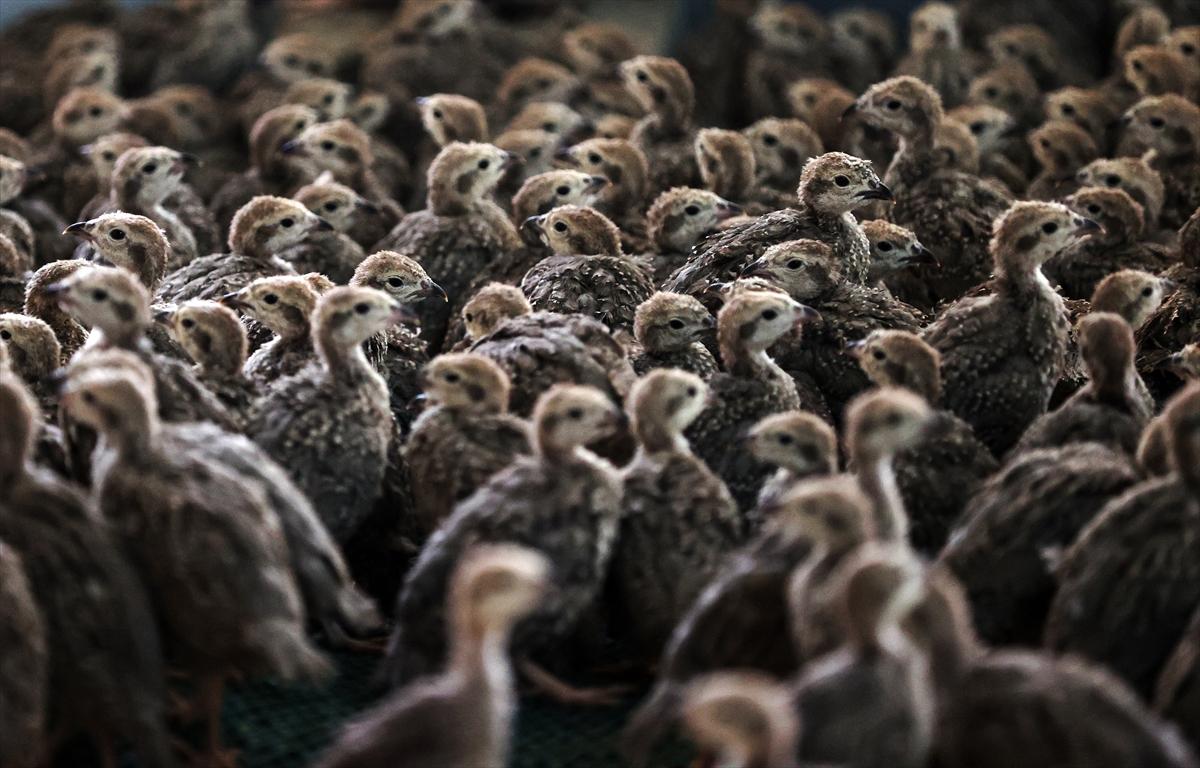 Ortalama 24 günde yumurtadan çıkan ve hazırlanan geniş kafeslere alınan civcivlerin besleme ve bakımları özenle yapılıyor.