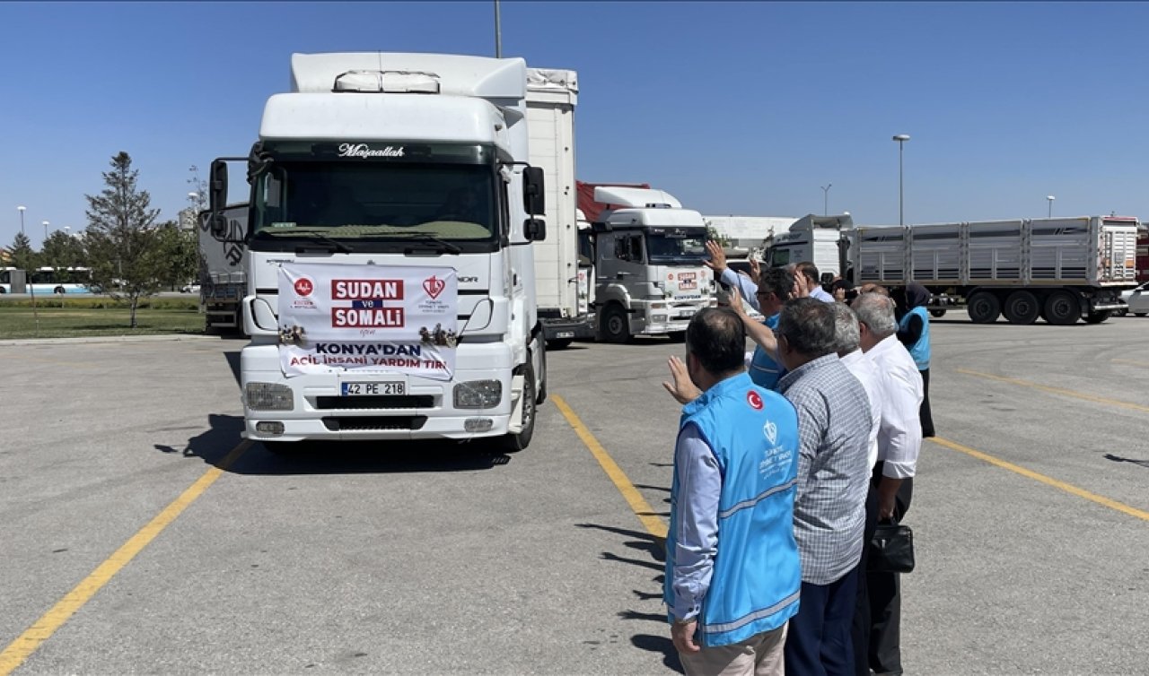 Konya İl Müftülüğü, TDV Konya Şubesi ve 31 İlçe Müftülüğü'nün işbirliğiyle Sudan ve Somali'deki ihtiyaç sahibi kardeşlerimize ulaştırılmak üzere hazırlanan 4 tır insani yardım malzemesi Sudan ve Somali'ye ulaştırılmak üzere yola çıktı.