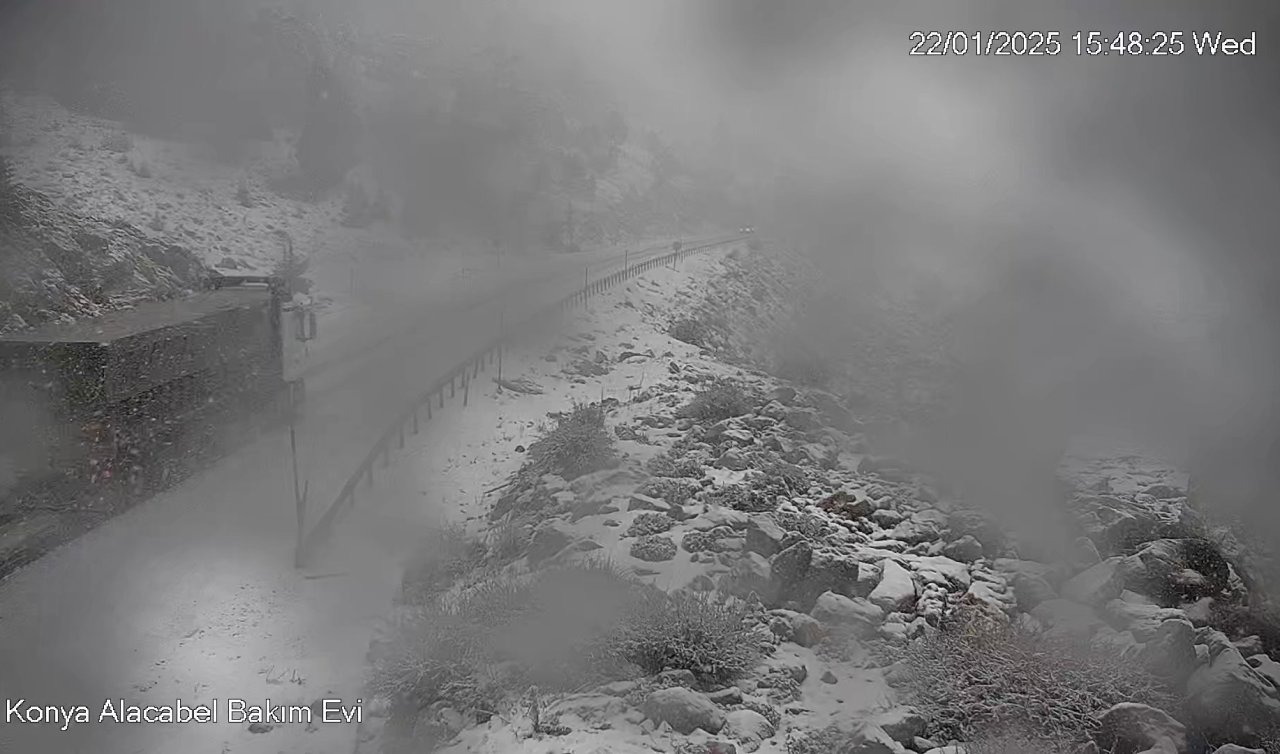 Konya ile Antalya’yı birleştiren Alacabel geçidinde yoğun kar yağışı!