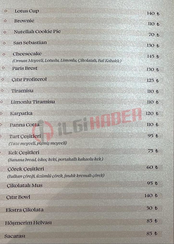 İşte Kırkikindi Pastanesi'nde yeni fiyatlar: