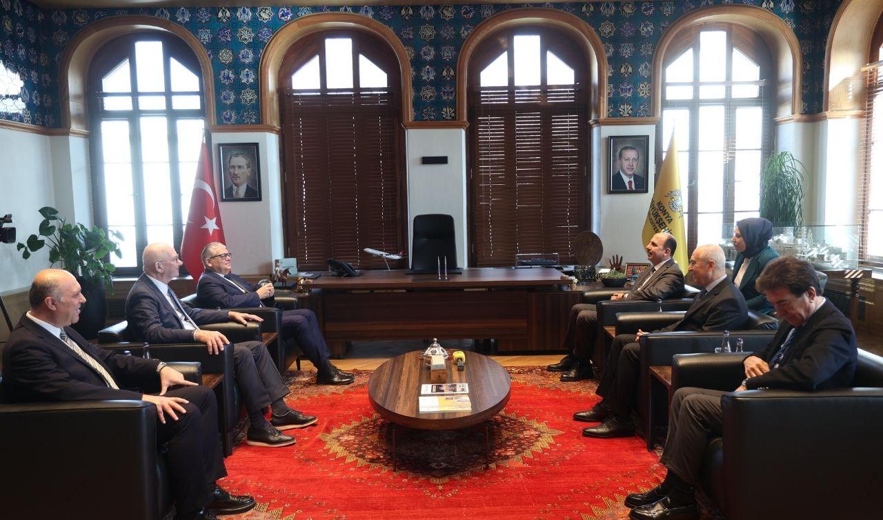 "2026 UEC Elit Avrupa Pist Bisikleti Şampiyonası" için Konya'da bulunan Avrupa Bisiklet Birliği Başkanı Enrico Della Casa ve Türkiye Bisiklet Federasyonu Başkanı ve UCI Dayanışma Komisyonu üyesi Emin Müftüoğlu, Konya Büyükşehir Belediye Başkanı Uğur İbrahim Altay'ı ziyaret etti.
