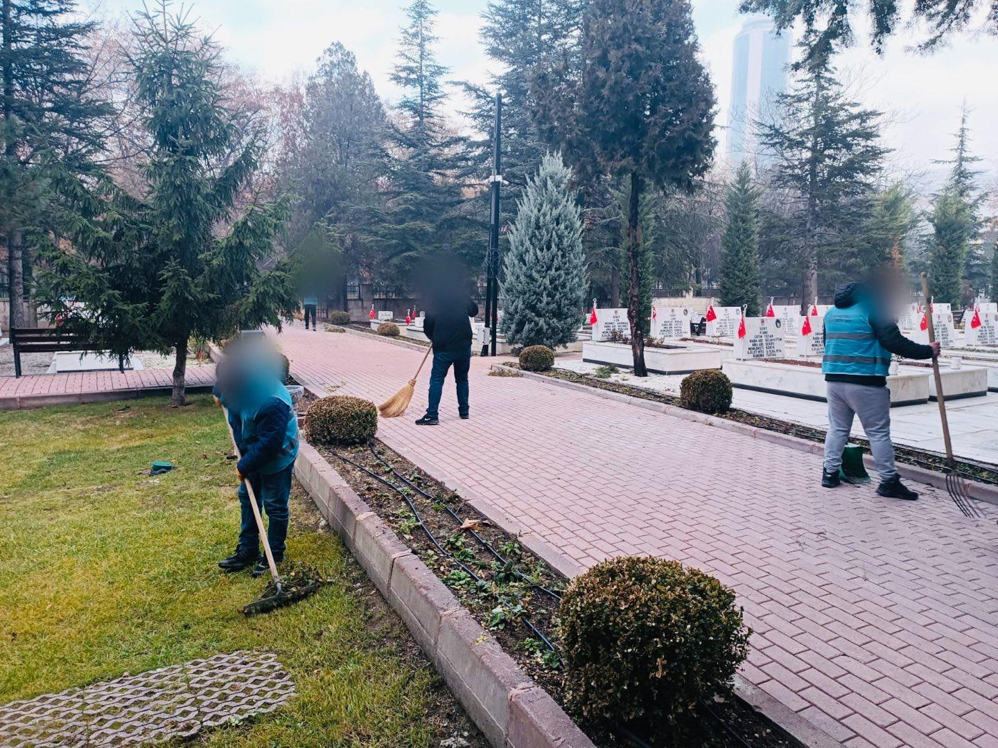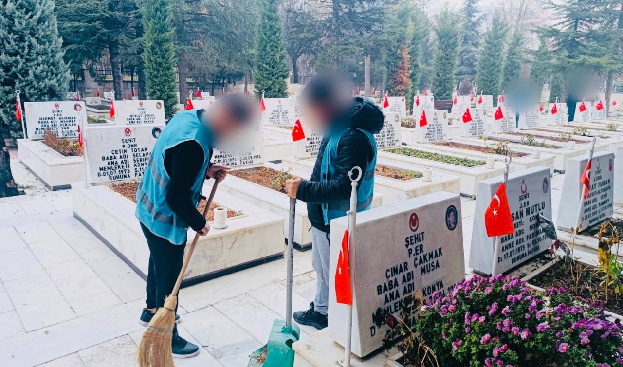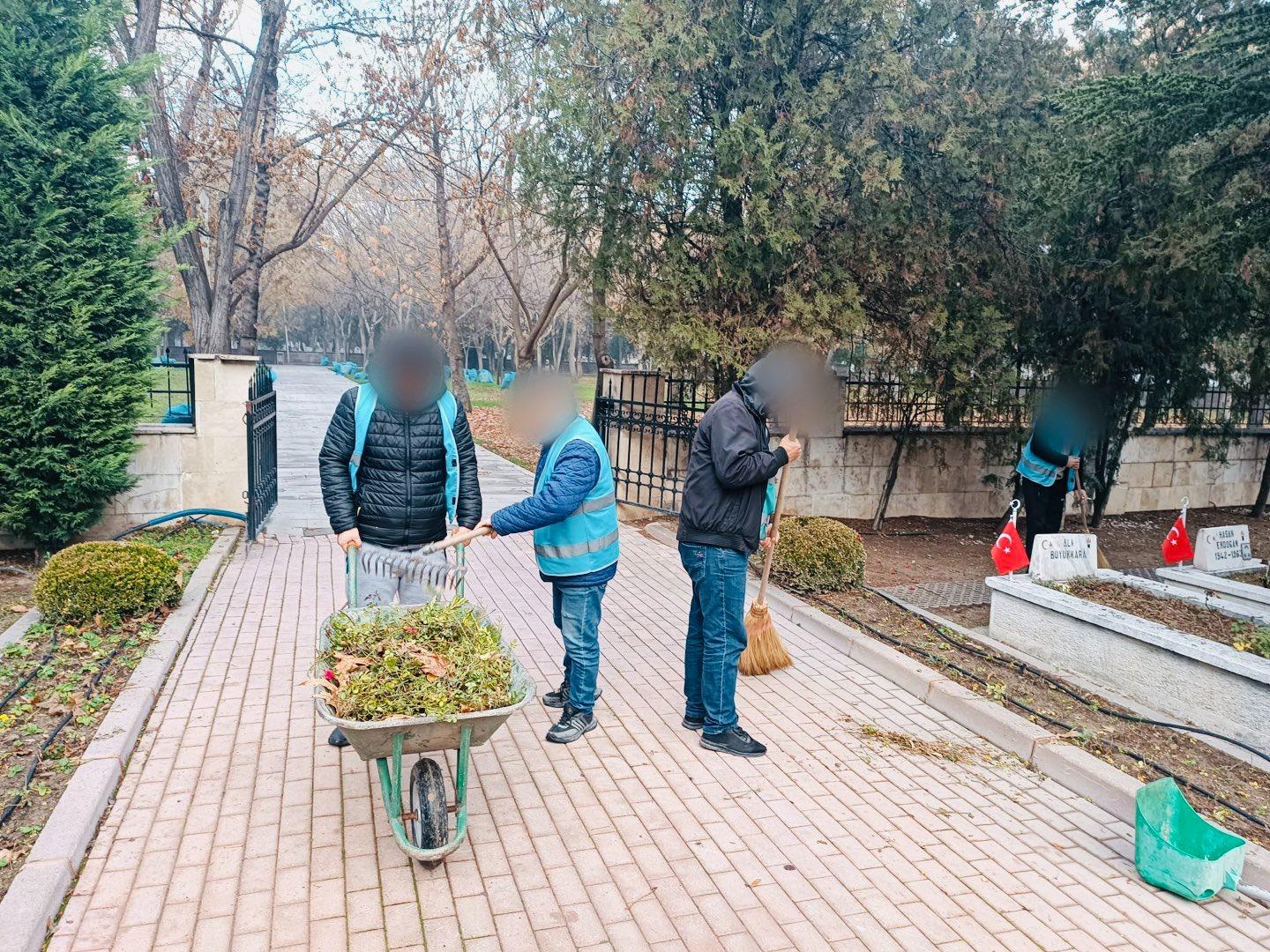 Konya Şehitliği'nde çevre temizliği çalışması, denetimli serbestlik tedbirine tabi tutulan yükümlüler tarafından gerçekleştirildi. Kamuya yararlı bir işte ücretsiz çalışma yükümlülüğünü yerine getiren yükümlüler, şehitliğin temizlenmesine katkıda bulunarak anlamlı bir görevi yerine getirdi.