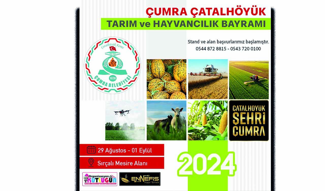Bu yılda çevre illerden de firmaların katılım sağlayacağı Çumra Çatalhöyük Tarım ve Hayvancılık Bayramı; Tarım aletlerinden Çumra'nın yöresel ürünlerine, tarımsal teknoloji firmaları, zirai ilaç firmaları, hayvancılık – yem ve besleme ürünleri firmaları, bitki ve peyzaj firmaları, yöresel lezzet firmaları ve sanayici – STK'lar yer alacak şekilde belirlendi. Ayrıca aileler ve çocuklar için yapılacak etkinliklerde Tarım bayramına renk katacak.