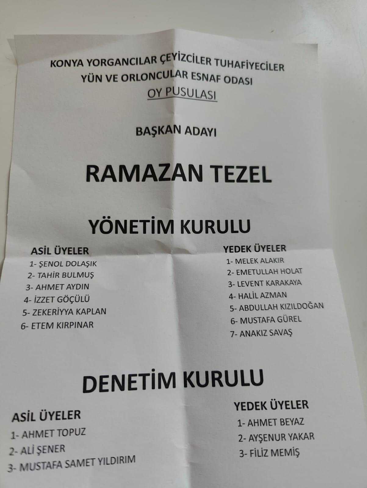 Konya Yorgancılar Çeyizciler ve Tuhafiyeciler Odası’nda Ramazan Tezel güven tazeledi