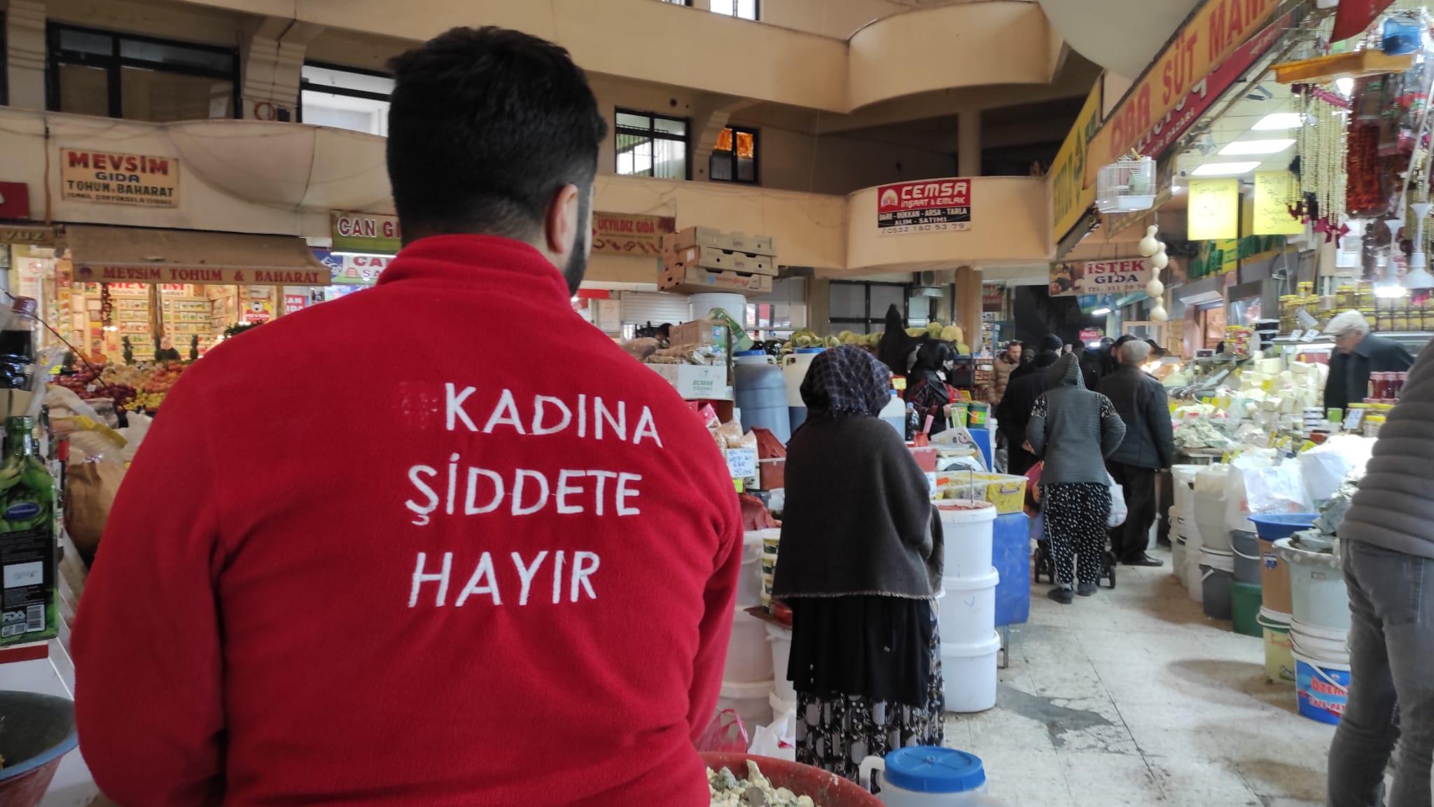 Konyalı Esnaf ’’Kadına Şiddete Hayır’’ Dedi: Sırtında Taşıdı