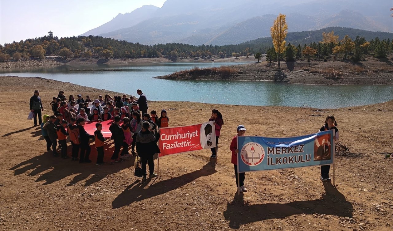 Öğrencilerin Gökçehüyük Barajında gerçekleştirdiği etkinliğe İlçe Milli Eğitim Müdürü Tahir Kibar da katıldı.