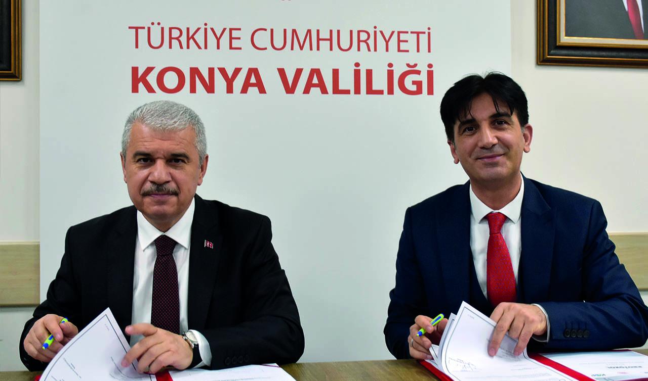 KOP İdaresi Başkanlığı tarafından finanse edilen ve sahada Sanayi Teknoloji İl Müdürlüğü uhdesinde yürütülecek iki önemli proje ile Konya sanayisine önemli katkılar sunulacağını ifade eden Vali Akın, "İmza törenini gerçekleştirdiğimiz ilk projemizde, Organize Sanayi Bölgeleri ile Küçük Sanayi Sitelerinde faaliyet yürüten işletmelerimiz için Mesleki teknik eğitim kurumlarımızın bünyesinde KOP Sanayi Alt yapısının güçlendirilmesi faaliyetlerine katkı sağlamayı amaçlıyoruz. Projeden beklenen bir yandan işletmelerimizin altyapı ihtiyaçlarının karşılanması, bir yandan nitelikli işgücü oluşturulması, diğer yandan ise maliyet yüksekliği nedeniyle bireysel olarak temin edilemeyen teçhizatların ortak bir kullanım merkezi oluşturularak sanayi sitelerinde hizmet gösteren işletmelerimizin ve sanayicilerimizin kullanımına açılması planlanmaktadır. Bu kapsamda merkezde yer alacak makine ve teçhizatlardan yararlanma, kalifiye işçiliğin desteklenmesi ve personel eğitimlerinin yapılması da planlanmaktadır. Enerji Verimliliği Ölçüm Destekleri projesinde ise Konya genelinde yer alan kamu ve özel sektöre bağlı kuruluşlar için enerji verimliliği ile ilgili etütler yapılacak, enerji verimlilik kapasiteleri belirlenecek ve bu çerçevede işletmelerimizin enerji maliyetlerinin azaltılması ve bilinçlendirme çalışmaları yapılacaktır. Geleceğe dönük enerji yatırımlarında ise bu verilerden hareket edilerek nasıl daha ekonomik olacağı hususunda işletmelerinizin bilinçlendirilmesi sağlanacaktır. Her iki protokolümüzün  de hayırlar getirmesini temenni ediyorum” dedi.
