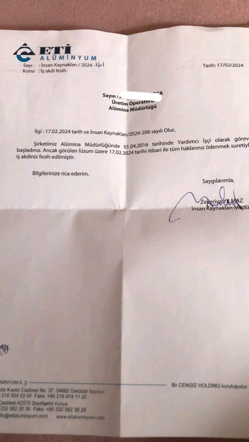 Seydişehir Eti Alüminyum Fabrikası'nda imzalanan ek protokolün ardından işçiler işten çıkarılmaya başlandı. 30'a yakın işçinin iş akdinin feshedildiği bilgisini veren işçiler, "Sözleşme öncesi gözdağı vermek için işten atıyorlar. Birliğimizi koruyacağız” dedi.