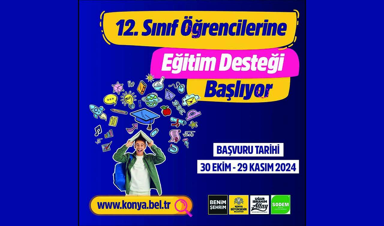 Konya il sınırları içinde ikamet eden, örgün eğitim ve açık öğretim veren liselerde eğitime devam eden 12. sınıf öğrencilerinin yararlanacağı nakdi eğitim desteği başvuruları için https://egitimdestekleri.konya.bel.tr adresinden başvuru alınacak.