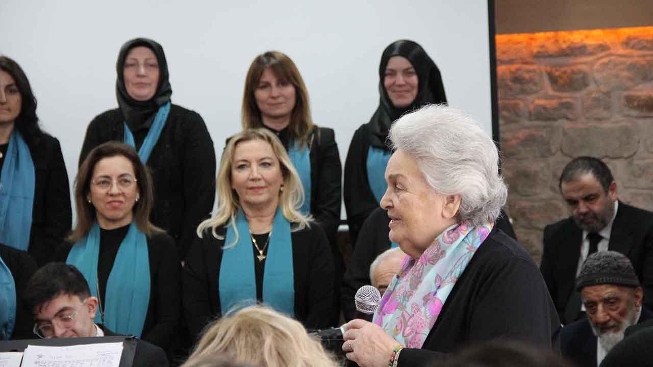 "Sizlere hoşgeldiniz derken, koroma da hoşgeldiniz demek istiyorum çünkü Ankara'dan geldiler. Nebahat hocam gönülden bizlerle beraber. Sekizinci yılımız ve konser sayımızı bilmiyoruz. Müzik, gerçekten insanları bir araya getiren bir güzellik. Belki de hiç birbirini görmemiş insanlar bu vesileyle bir araya geliyor. Bunu en çok seyahatlerde anlıyoruz. Koromuzla şehir şehir konserler veriyoruz."