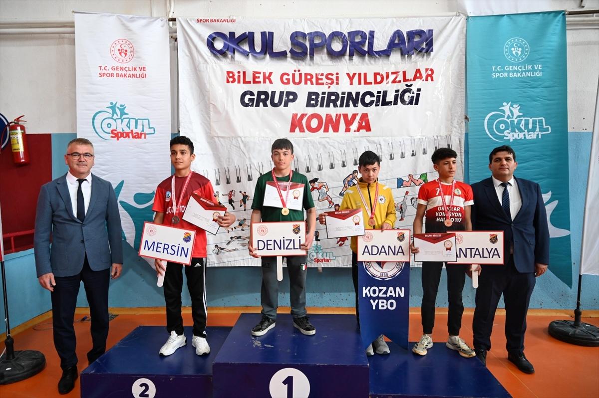 Konya’nın Seydişehir ilçesinde Okul Sporları Yıldızlar Bilek Güreşi Grup Müsabakaları düzenleniyor.