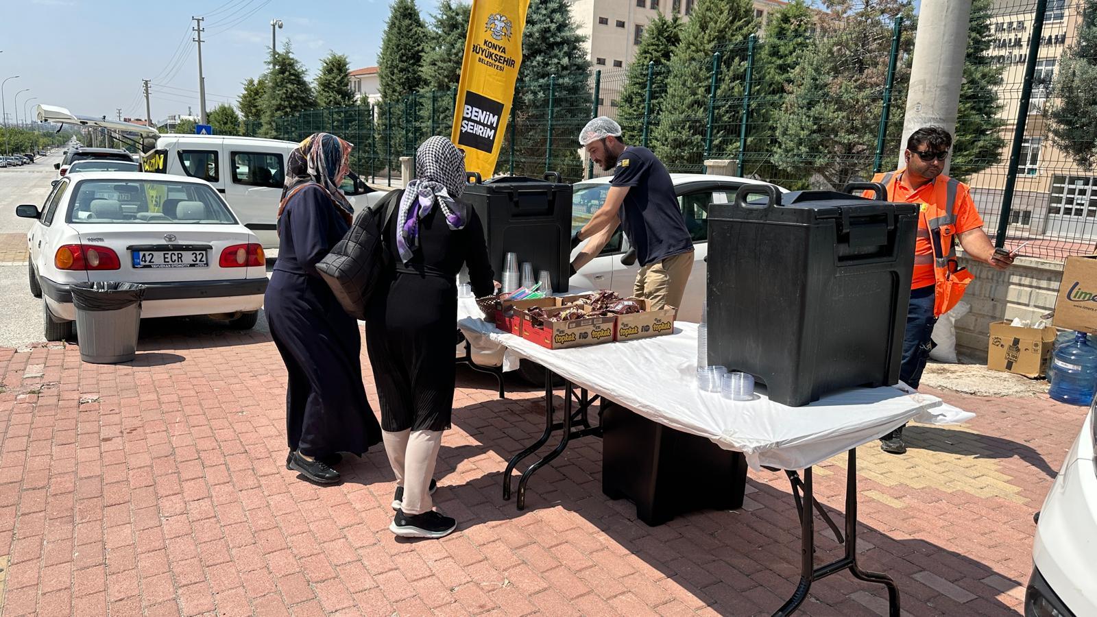 Konya Büyükşehir Belediyesi, Yüksek Öğretim Kurumları Sınavı’nda ter döken öğrencilerin ailelerine farklı okullarda kurduğu stantlar ve mobil ikram araçları ile çeşitli ikramlarda bulundu.
