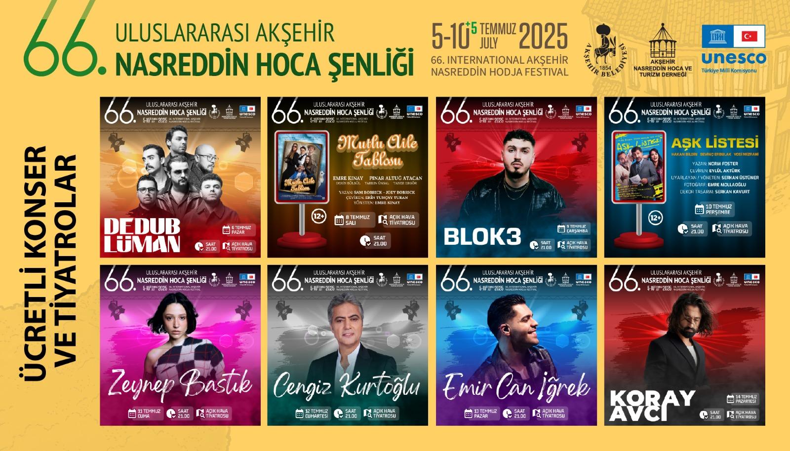 Akşehir Belediyesi tarafından düzenlenen ve her yıl büyük bir coşkuyla kutlanan 66. Uluslararası Akşehir Nasreddin Hoca Şenliği kapsamında gerçekleştirilecek konser ve tiyatro etkinliklerinin bilet satışları başladı.