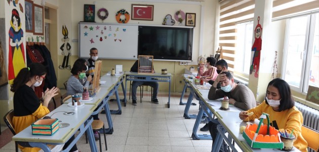 Atık malzemeler özel öğrencilerin elinde sanat eserine dönüşüyor