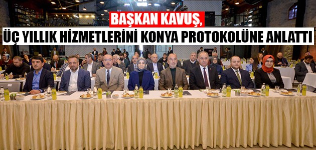 BAŞKAN KAVUŞ, ÜÇ YILLIK HİZMETLERİNİ KONYA PROTOKOLÜNE ANLATTI