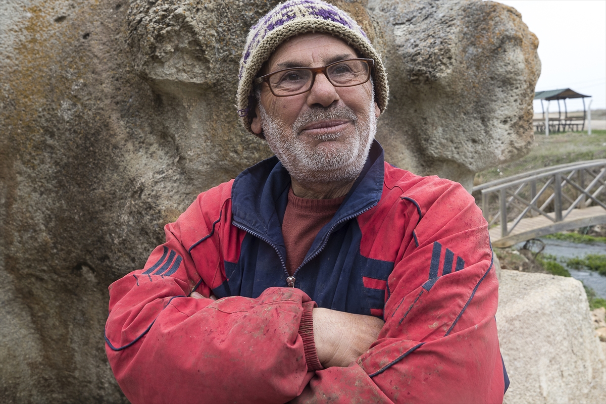 "Buraya gelenleri az buçuk kestirebiliyorum. Geçtiğimiz yıllarda şüpheli bulduğum 2 kişi, anıtın etrafında keşif yapıyordu. Onlara ne aradıklarını sordum, çelişkili cevapları verince jandarmayı aradım, hemen terk ettiler. Defineciler de geliyor. Evim, buranın yakınında. Babam da muhtarlık yaptığı için buraya çok önem verirdi. Bizde gönüllü bekçilik babadan kalma diyebilirim. İnsanlığın önemli bir mirası, korunması ve gelecek nesillere aktarılması gerekiyor. Yaklaşık 30 yıl önce buraya ev yaptım. Tarım ve hayvancılıkla geçimimi sağlıyorum. Daha önce köyde yaşıyorduk. 'Biz olmasak buralar harabe olur' diye korkuyorum. Burayı zaman zaman günlük 500'e yakın kişi ziyaret ediyor."
