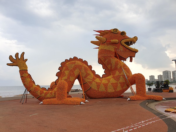 Kadınlar, tanıtım için ayrılan 100 tonluk portakal, limon ve greyfurtu özenle birleştirerek helikopter, deniz feneri, motosiklet, balina, ahtapot, ejderha, maymun, aslan ve ayı gibi ilginç figürler oluşturuyor.