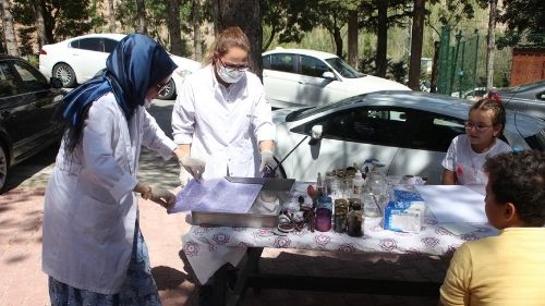Ayrıca piknik alanında ebru teknesi köşesi oluşturularak ebrunun anlamı, tarihçesi, modelleri ve yapılışıyla ilgili teorik bilgiler verildi. Ebru teknelerinin başına geçen gençler, fırçaların yardımıyla boyaların katmanlar halinde tekneye serilmesi ve oluşturulan desenlerin kağıt üzerine aktarılmasını izledi. Sonrasında ise teknenin başına geçen üyeler ve çocukları, diledikleri desenlerde ebruları hayal güçleriyle birleştirerek tekneden kâğıda aktarmaya çalıştı.
