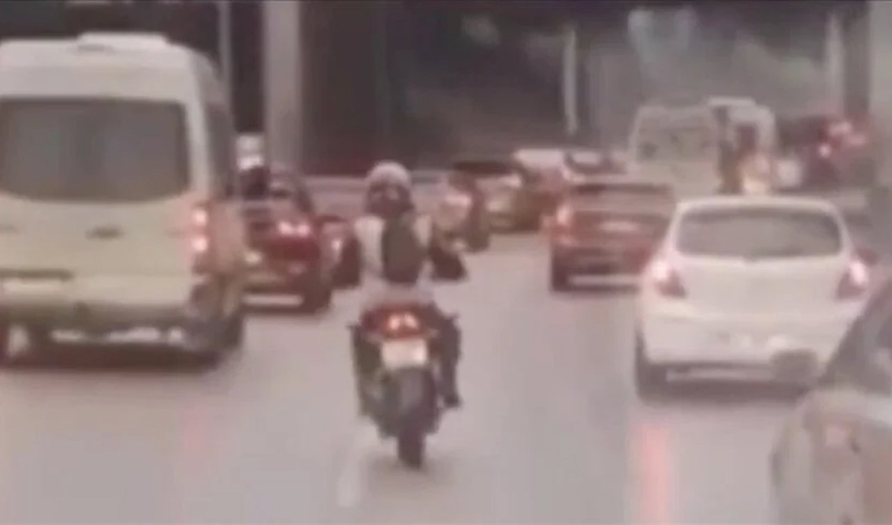 Motosiklet sürücüsü, ambulansın önüne geçerek trafiği açtı