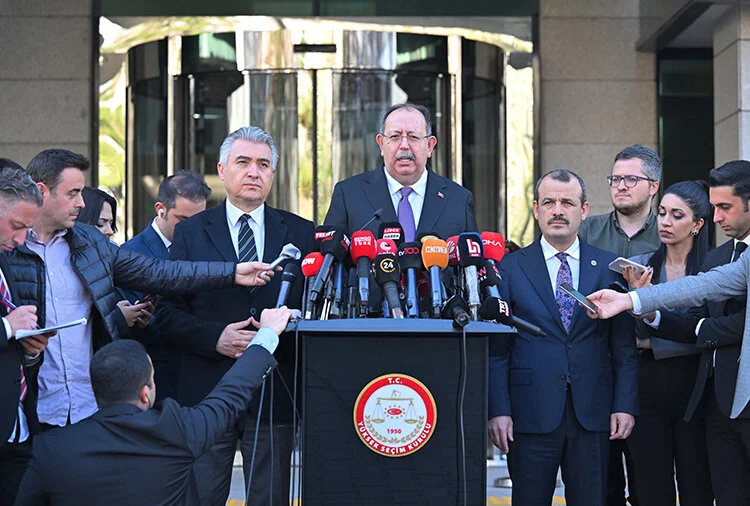 Yüksek Seçim Kurulu (YSK) Başkanı Ahmet Yener, YSK önünde basın mensuplarına açıklama yaptı.