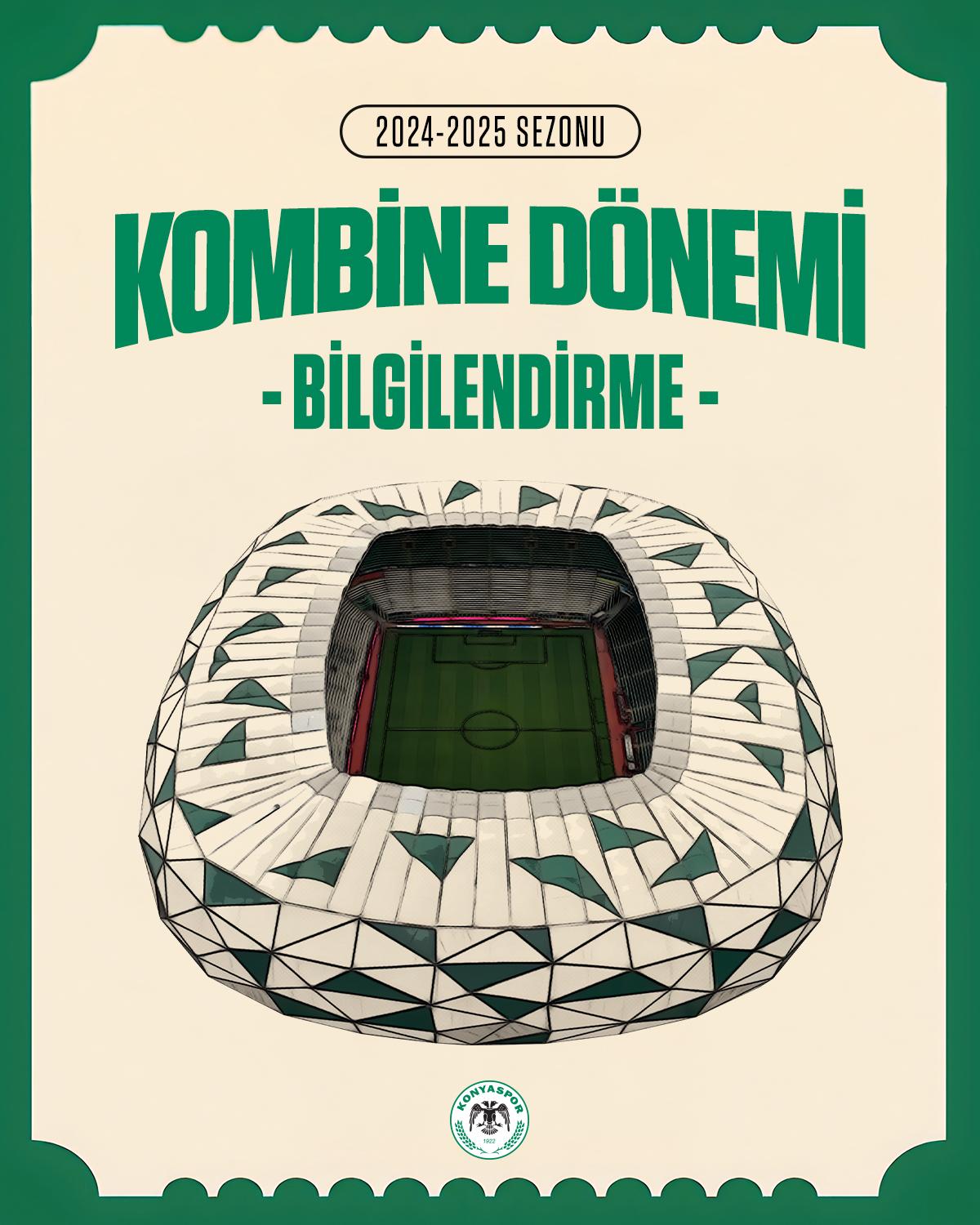 2. 1 Temmuz 2024 Pazartesi günü, kombinelerimiz genel satışa açılacaktır. Güney Üst tribün satışa açılmayacaktır. Kombinelerin satışı sadece Konyaspor Passolig kart sahiplerine yapılacaktır.